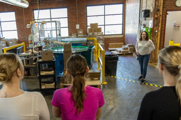 As they explored different areas of the production floor, students in MGMT 332: Problem Solving in the Business World considered concepts that ranged from branding and marketing to sales forecasting, quality assurance and more.