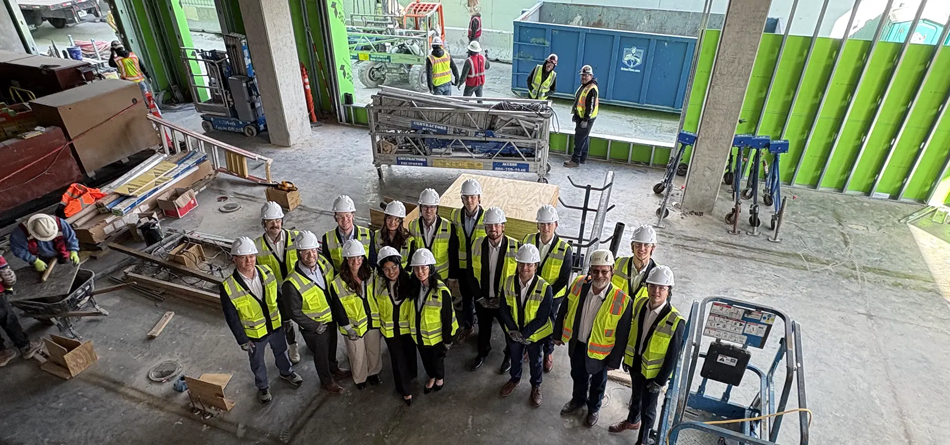 Over the course of two days, students toured a wide range of real estate developments and met with professionals across multiple sectors of the industry. The trip began with White Lodging, where students learned about hotel development from Vice Chairman and CIO Conner White, and toured Hotel Trinity, a new property currently under construction.